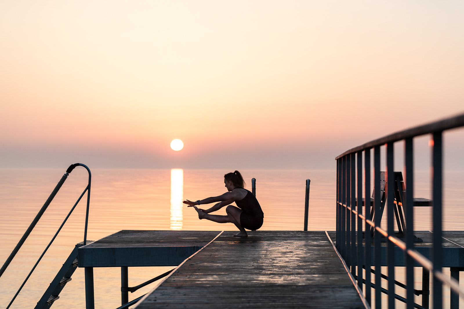 Working with Kurhotel Skodsborg and Marie Ingemann Aamodt on crossfit images by the ocean one early morning.