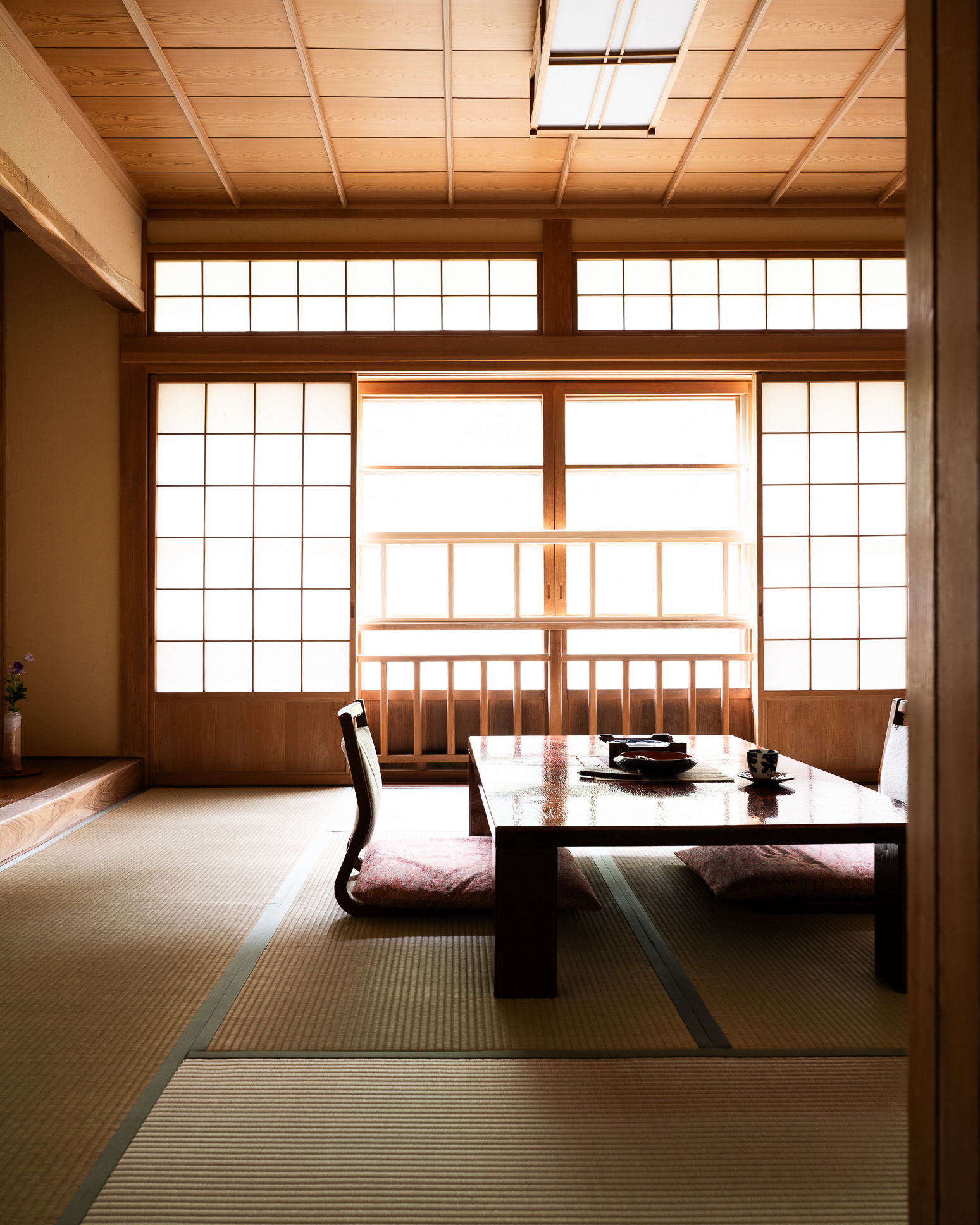 The rooms at Hoshi Onsen feel like stepping into a quiet, carefully composed world where everything has a purpose. It’s about atmosphere, simplicity, and harmony with nature. Instead of carpet or wood, the room is covered with tatami mats - woven rice straw that feels softly springy under your feet and has a wonderful scent.