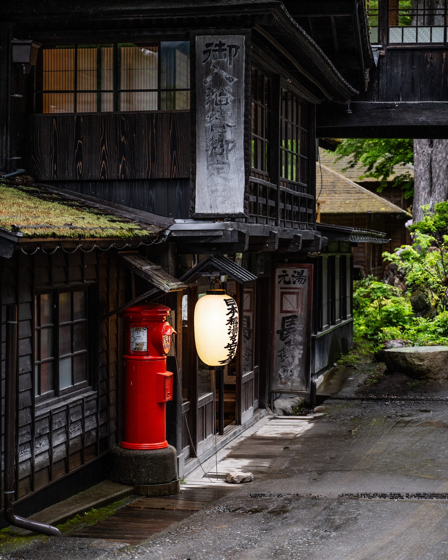 You’ll find a yukata (light cotton robe) neatly folded, ready to wear throughout the ryokan, including on the walk to the baths. There’s also a small tea set—green tea, cups, a kettle and the wonderful old phone.