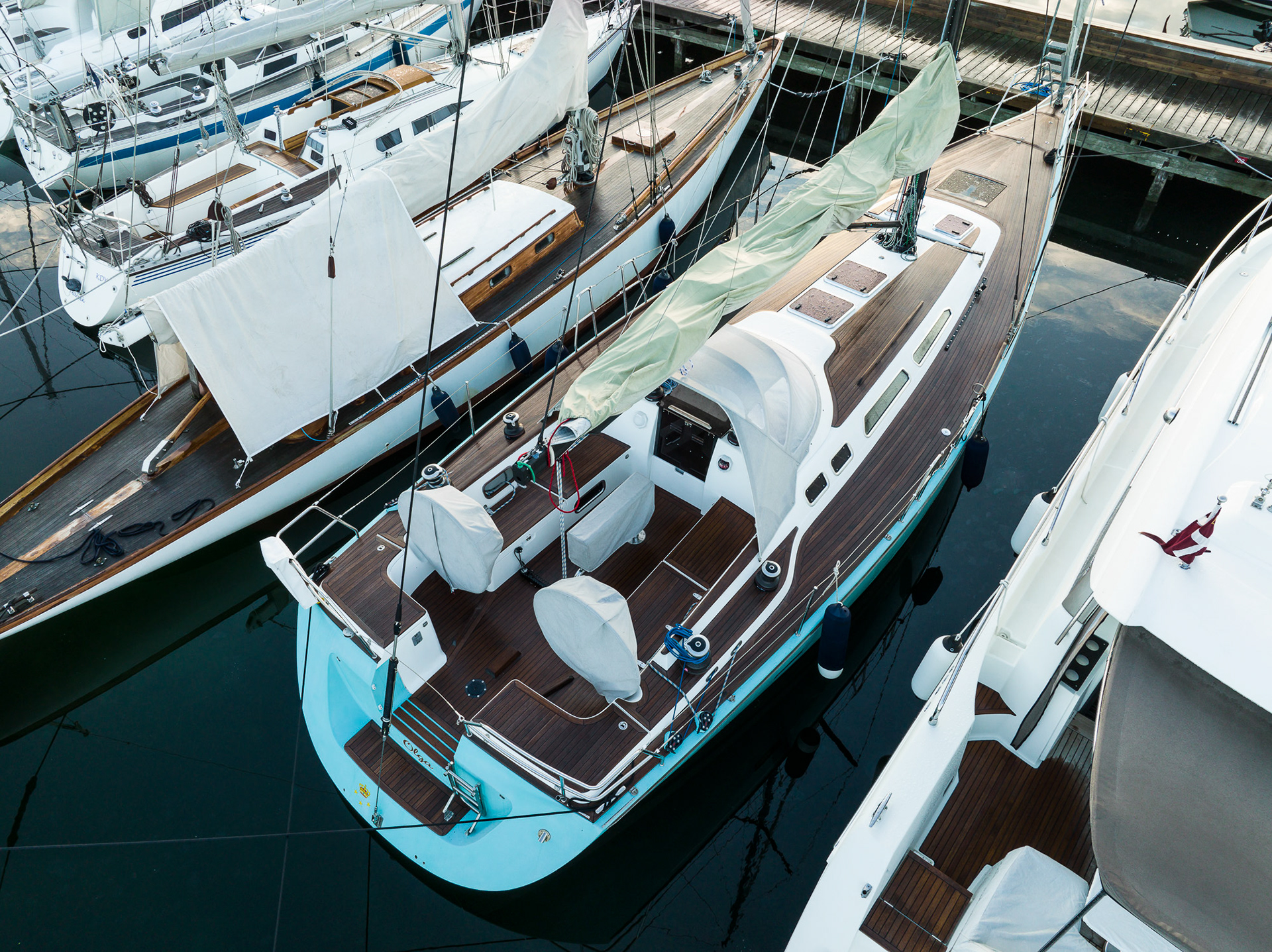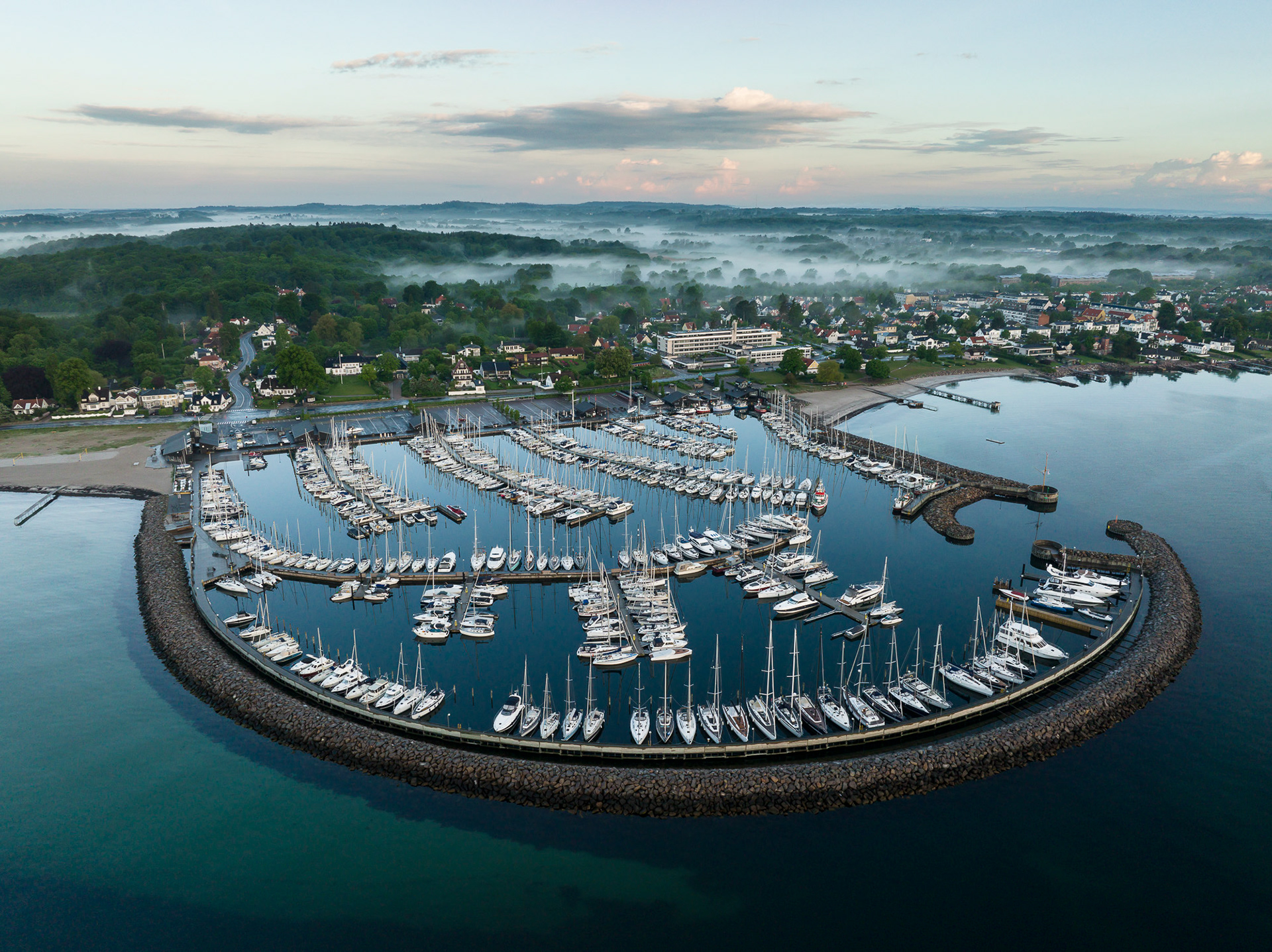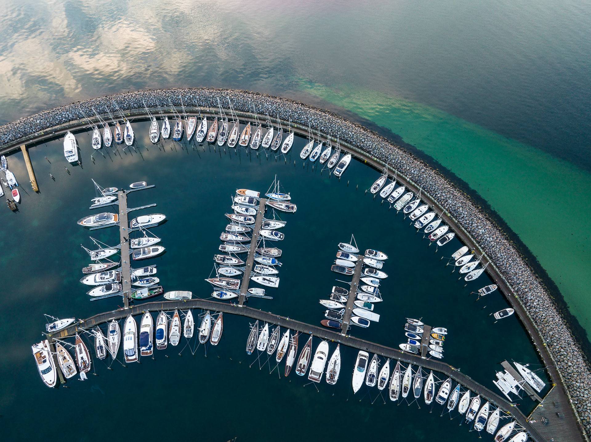 Images from working with Dickson / Sunbrella sprayhood - Luffe 45 sailboat in Vedbæk north of Copenhagen. Primarily drone images and a few from the harbour.
