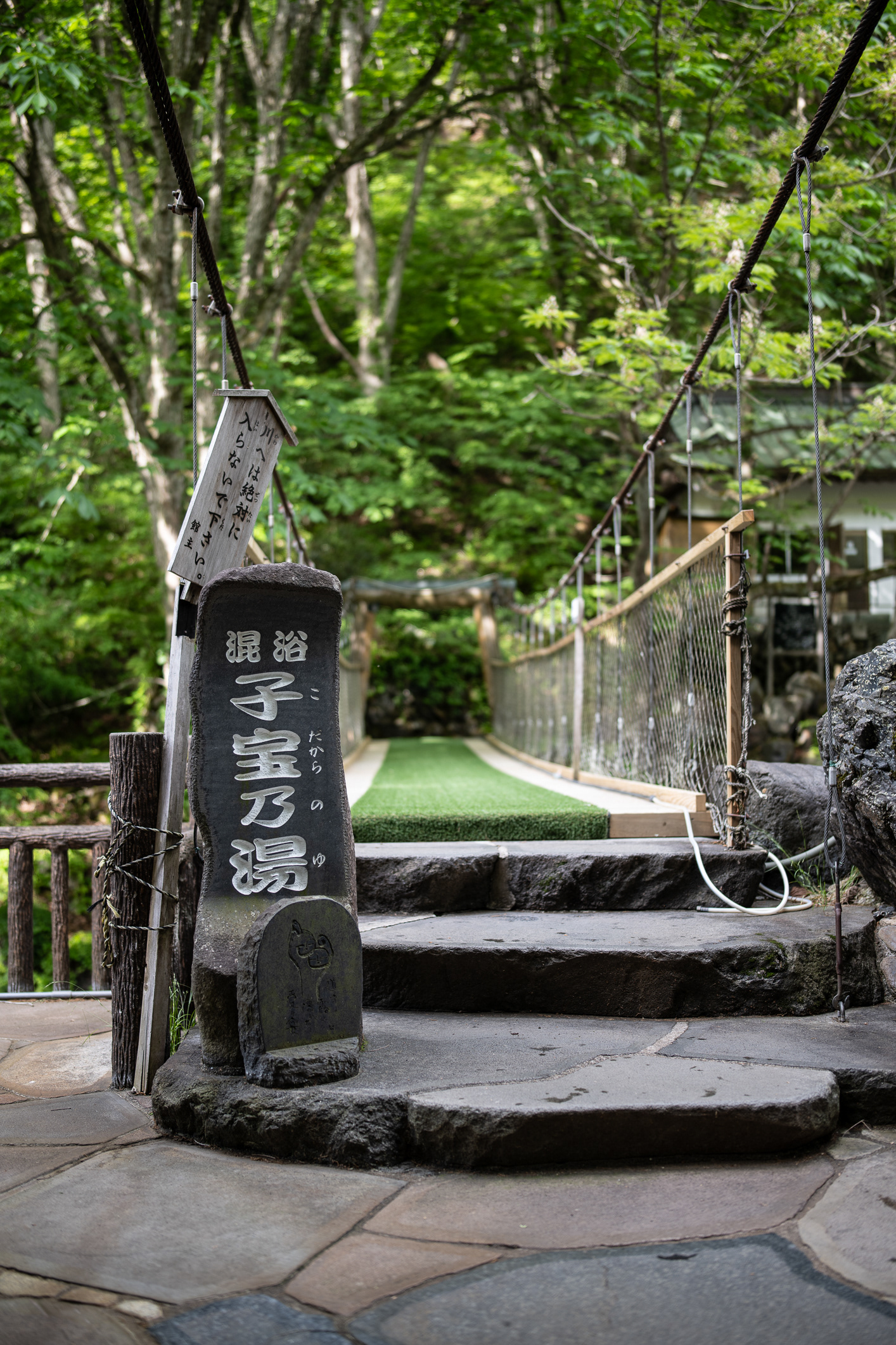The suspension bridge at Takaragawa onsen - towards the baths