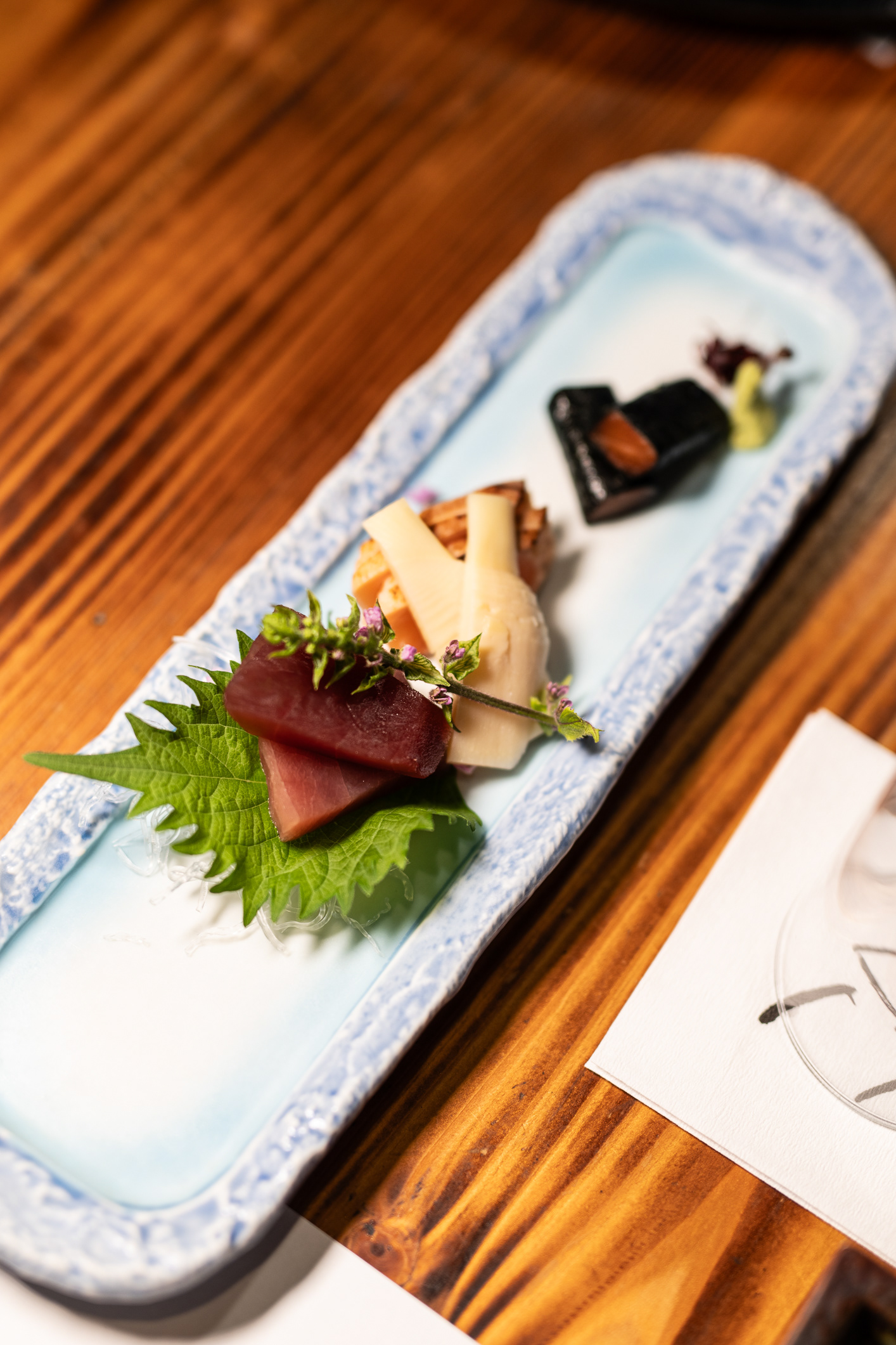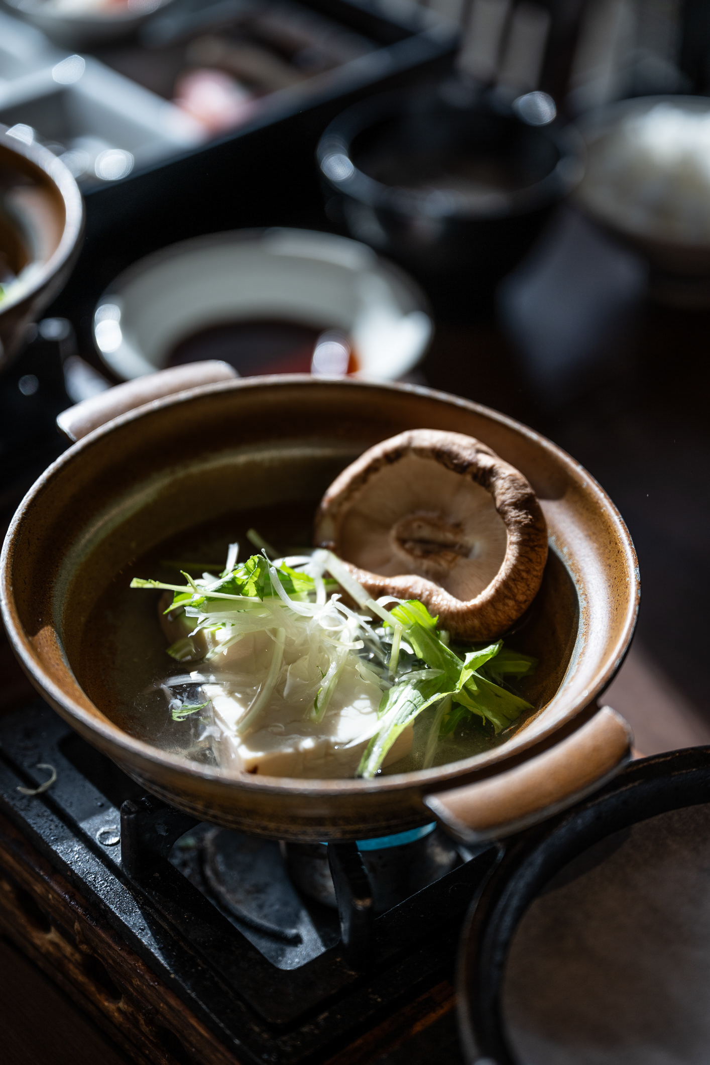While the exact menu changes with the season, dishes often include seasonal ingredients from the mountains and rivers like local mountain vegetables (sansai), wild greens and shoots picked fresh each season, mushrooms and wild herbs harvested from nearby forests and river fish - grilled, simmered or served as sashimi.