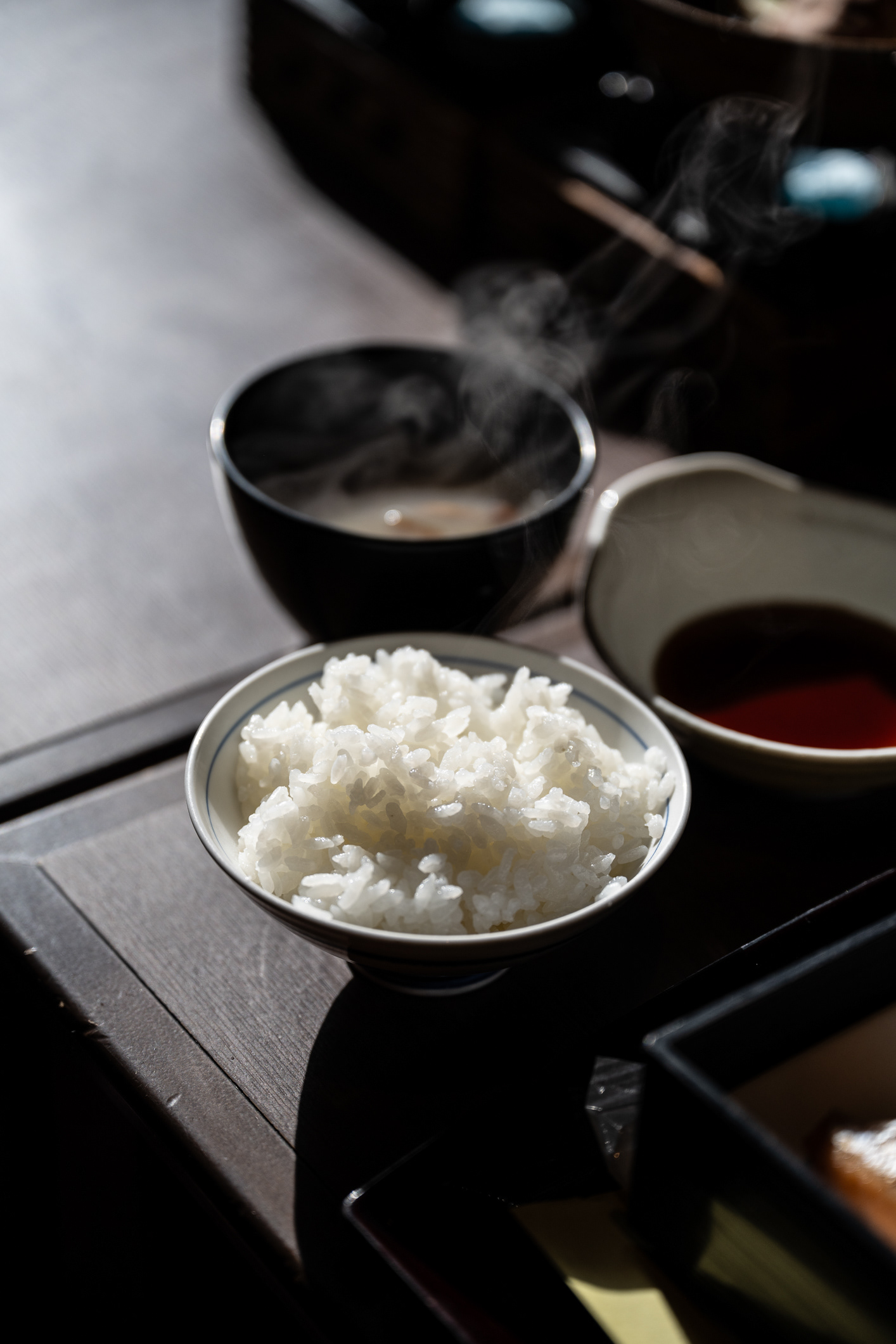 Breakfast at Takaragawa Onsen is typically served in the restaurant dining area and you choose between Japanese or Western-style breakfast. A traditional Japanese breakfast, at Takaragawa Onsen includes: grilled fish (often salmon), egg or tamagoyaki (rolled omelette), rice and miso soup, vegetables and pickles and yogurt or small fruit.